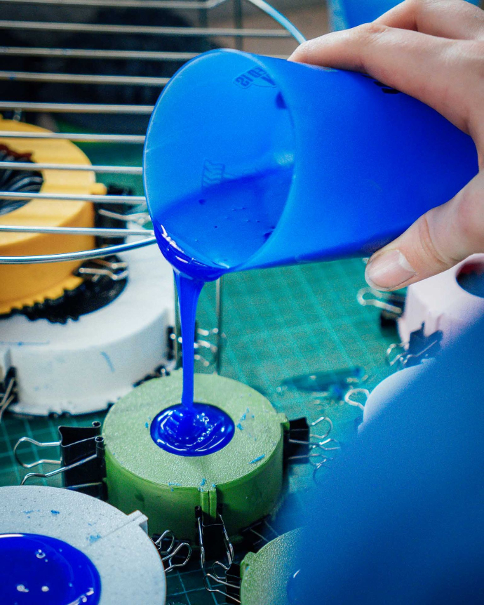 La production : 400 moules en silicone coulés à la main